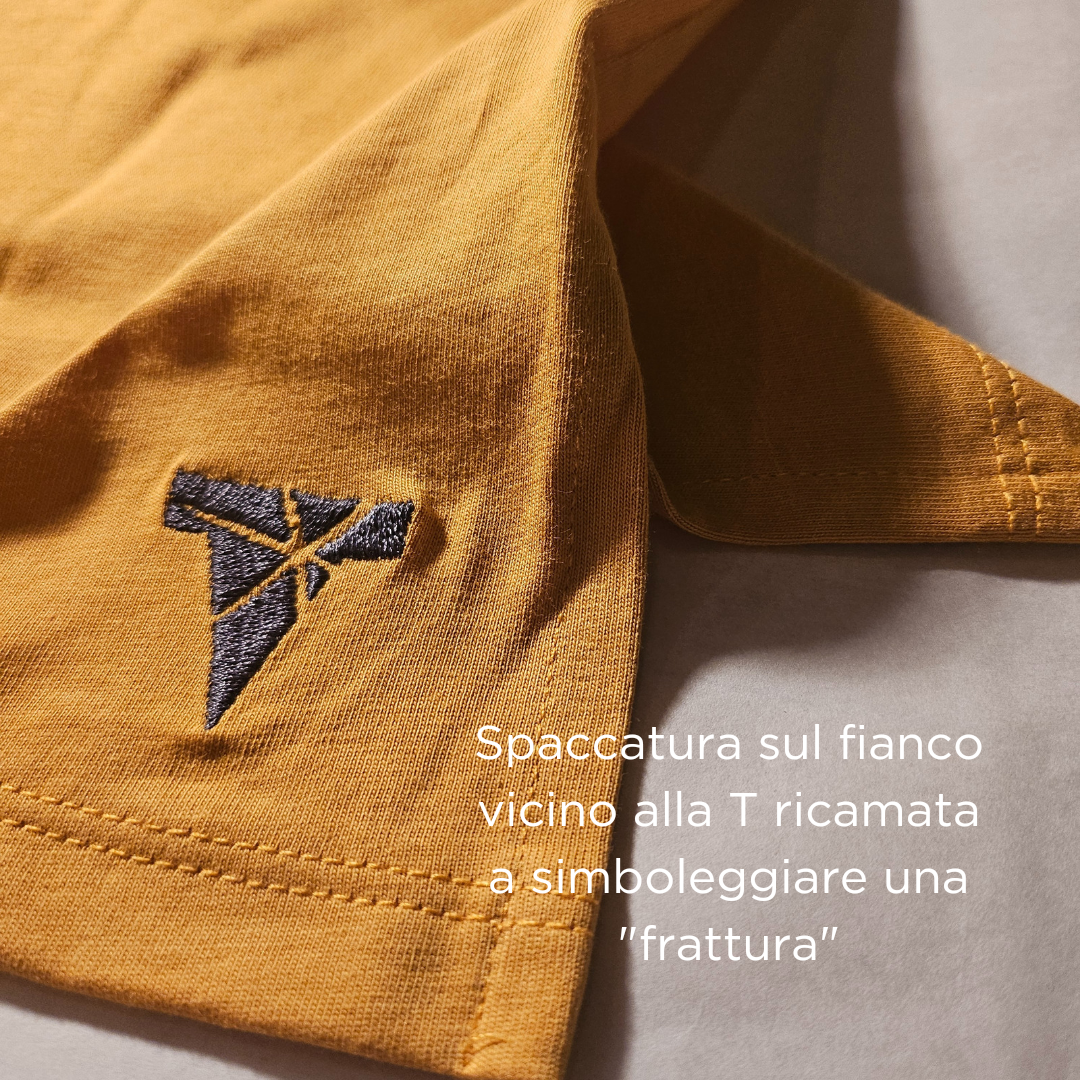 - T ricamata in tinta con logo sul retro maglia vicino allo spacco laterale